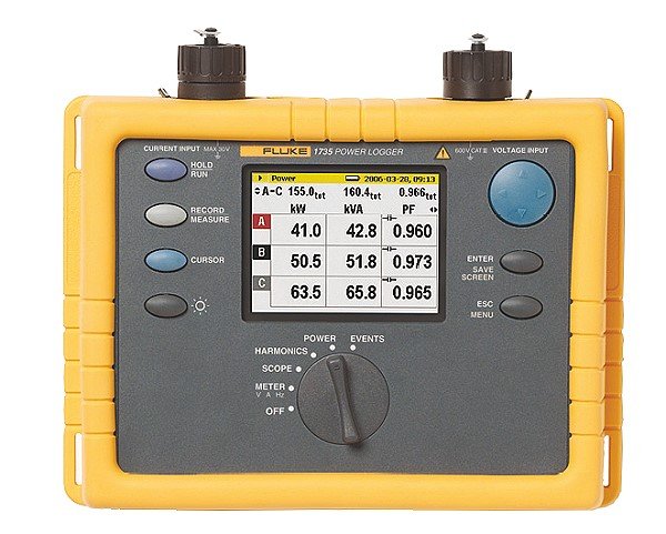 The Fluke 1735 Power Logger is the ideal electrician or technician's tool for conducting energy studies and basic power quality logging. Set up the Fluke 1735 in seconds, with the included flexible current probes and color display. The Fluke 1735 logs most electrical power parameters, harmonics and captures voltage events.
