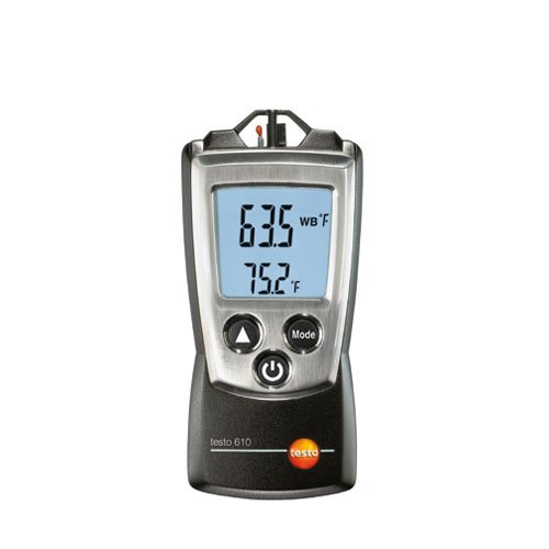 The Testo Humidity and Temperature Meter features a long-term humidity sensor with an accuracy of ±0.9F. The unit comes with a hold function to easily read data as well as a dew point calculator. The Testo Humidity and Temperature Meter comes with a certificate of conformity and a resolution of 0.1 ° F. The unit also features an accuracy of ±2.5% RH (5 to 95% RH) for temperature and operating temperatures of 14 to +122 ° F. The Testo Humidity and Temperature Meter runs on 2 AAA batteries and has a battery life of 200 hours.