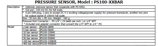 * Meter connects with 2, 5, 10, 20, 50, 100, 400 bar sensor, no calibration procedures are necessary when change a new sensor.