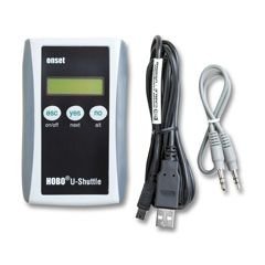 The pocket-sized Shuttle provides a convenient way to readout and relaunch many of the HOBO data loggers and bring the data back to your host PC. The HOBO Shuttle works with the HOBO U-series loggers and HOBO Weather Stations and Micro Weather Stations.