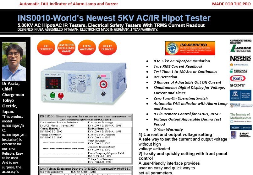 INS0010-5KV AC/IR INSULATION WITHSTANDING/HIPOT TESTER