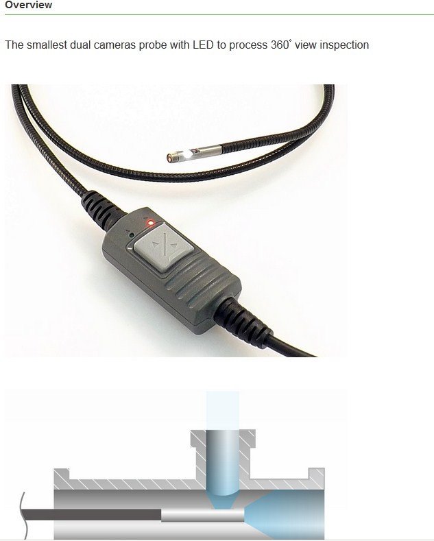 The smallest dual cameras probe with LED to process 360゚ view inspection